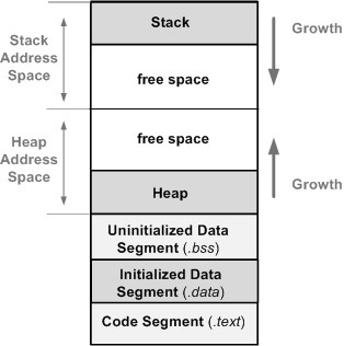 일반적인 프로세스는 아래와 같은 구조로 메모리를 사용한다: