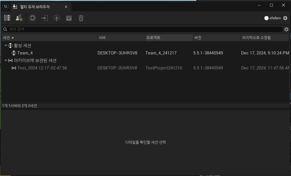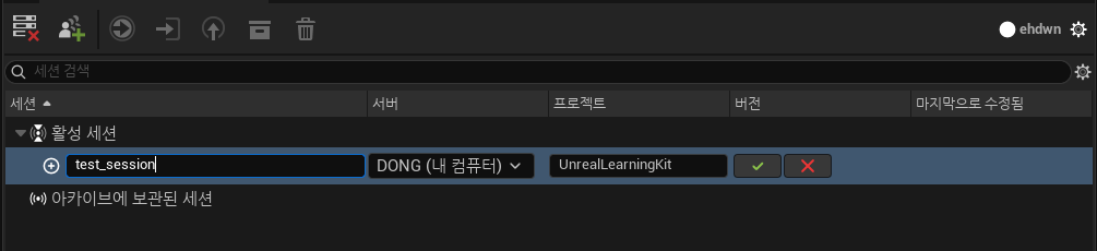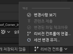 - 세션에서 작업한 내용을 로컬에 적용하고 싶다면 리비전 컨트롤 > 세션 변경 유지를 누르면 된다.