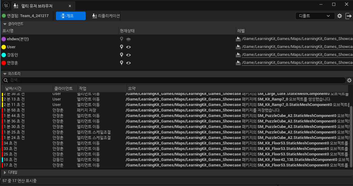 세션에 참여하면 작업 히스토리와 팀원들의 변경사항을 실시간으로 확인할 수 있다.