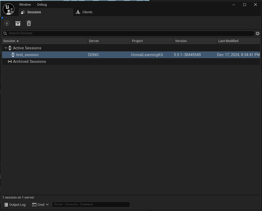 - 서버가 생성되면 세션 생성 버튼이 활성화된다.