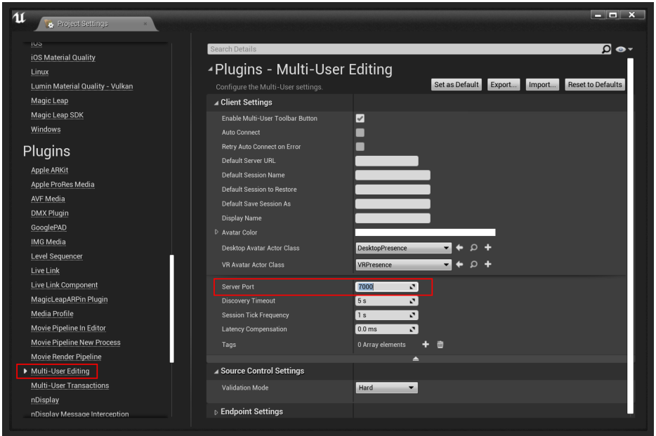 [ 프로젝트 셋팅 > Multi-User-Editing ] 에서 [ Server Port ]를 7000으로 설정