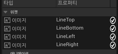 UserWidget을 상속받는 클래스를 작성하고, 상하좌우 Line에 해당하는 이미지를 바인딩한다.