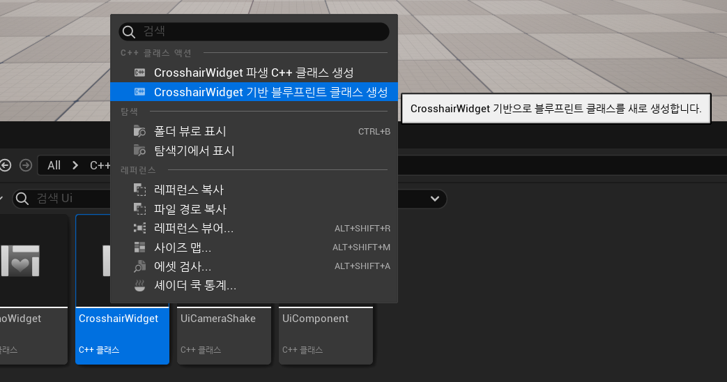 만든 C++클래스를 기반으로한 블루프린트 클래스를 생성해준다.
