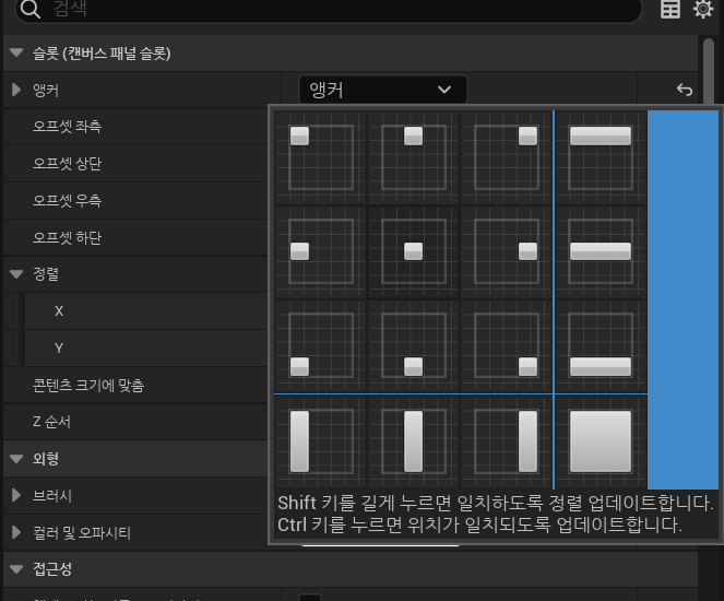 UpdateCrosshairSize 함수에서 Line들의 위치를 0~50 사이의 값으로 지정해주기 때문에, 렌더 트랜스폼의 위치는 0, 0으로 고정된 채 앵커를 조절하여 Line의 위치를 조절해야 한다.