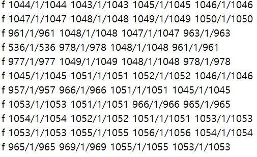 코드는 간단하다. file을 한줄마다 읽어 line에 저장하고 맨 앞글자가 'f' 일시 해당 라인이 f 라는 것이니 string의 split을 이용하여 나누어 준뒤 data의 수가 5이면 f값이 3개이고 6이면 4개이니 개수에 맞추어 v값만 추출하여 저장하면 된다.